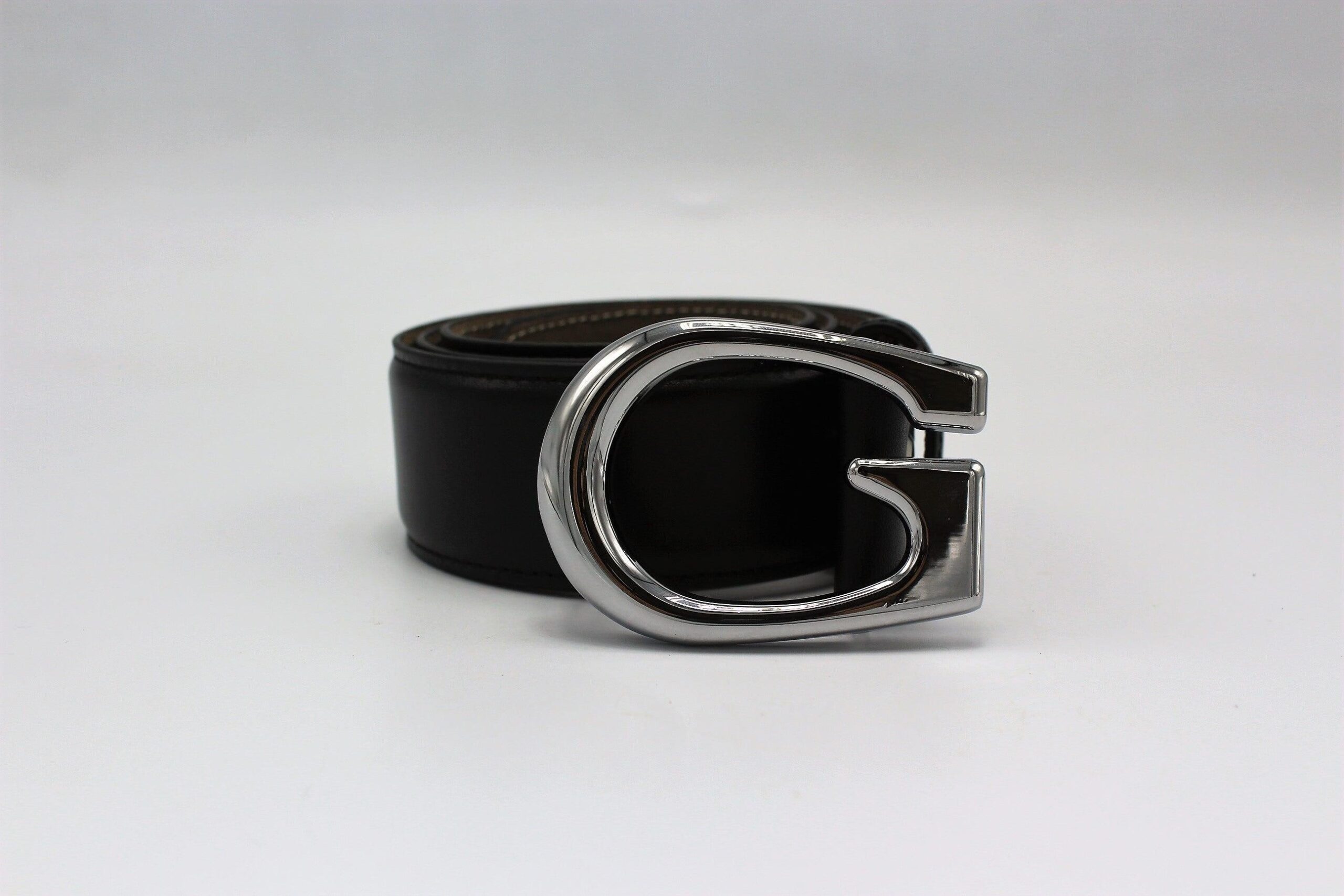 G Silver Buckle Leather Belt 40mm