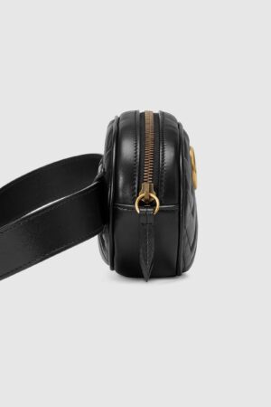 Part of the GG Marmont line, the belt bag was presented for the first time by Alessandro Michele in the Pre-Fall 2017 collection. It has a sportswear-inspired rounded shape with a leather belt which is designed so the bag can be worn high on the waist. It features the recognisable Double G detail-an archival play on the Running G.